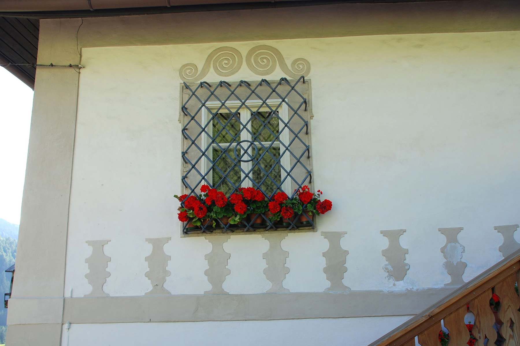 Col dala Pelda besteht aus einem würfelförmiger Barockbau und einem schindelgedeckten Holzstadel.
